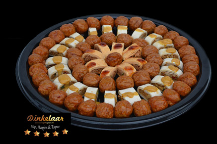 Een mooie grote hapjesschaal met veel hapjes. Fantastisch op elk feest of gelegenheid.